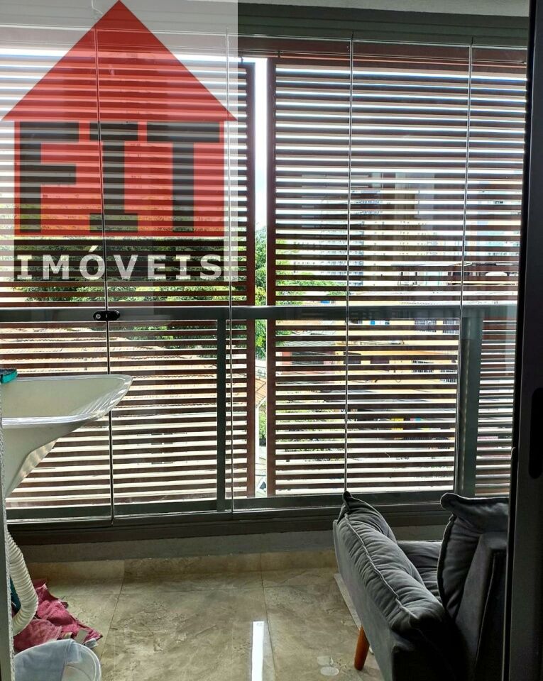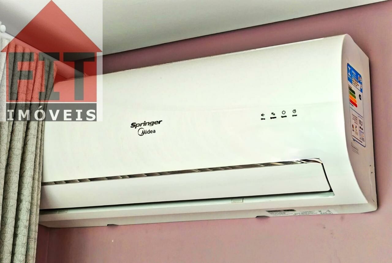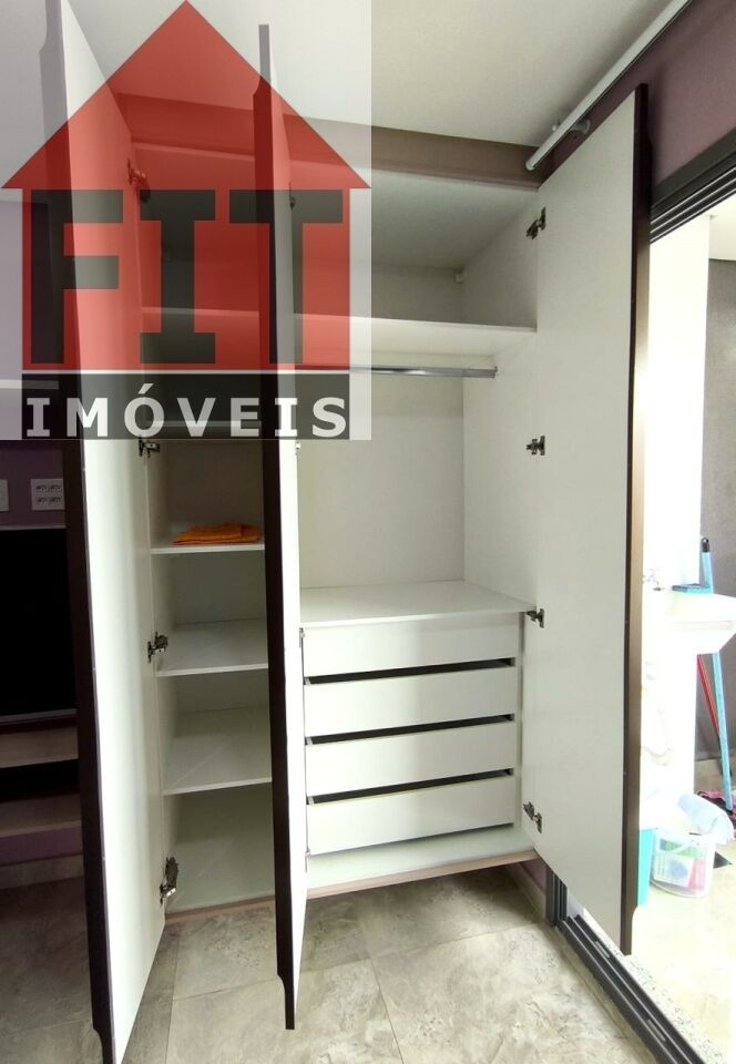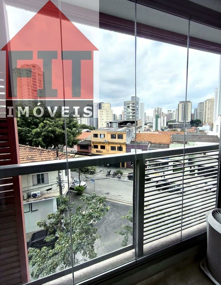 Terraço envidraçado, com brises de privacidade, guarda corpo em vidro e duas poltronas. Armários na cozinha, dormitório e banheiro, bancada home office com cadeiras e estante, poltrona, cama, ar-condicionado, TV 32', cooktop, microondas, cortina, tapetes, tanque e piso em porcelanato de alto padrão.